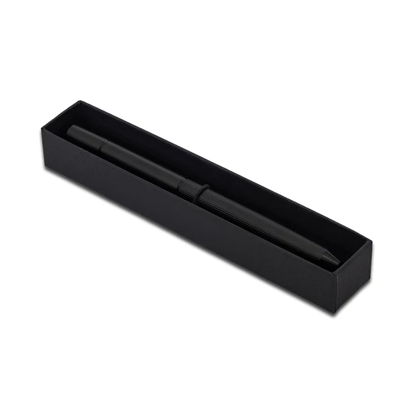 Długopis oraz wieczny ołówek w jednym. Wkład ołówka wykonany jest ze stopu metali, który pozostawia ślad na papierze. Długość pisania odpowiada 100 zwykłym ołówkom. Pakowany w prezentowym pudełku.